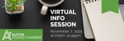 π Join the Austin Young Chamber's Monthly Virtual Info Session! New and Prospective Members, this one's for you! This Info Session is a program designed to help you get the most out of your membership or learn more about becoming a Young ...