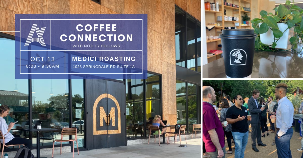 We'll also be joined by some of the Austin Notley Fellows. The Notley Fellowship equips rising leaders with the resources and connections necessary to elevate their community impact. Applications for the 2022 Class will be launching in October so come out to learn more and connect with likeminded community leaders!