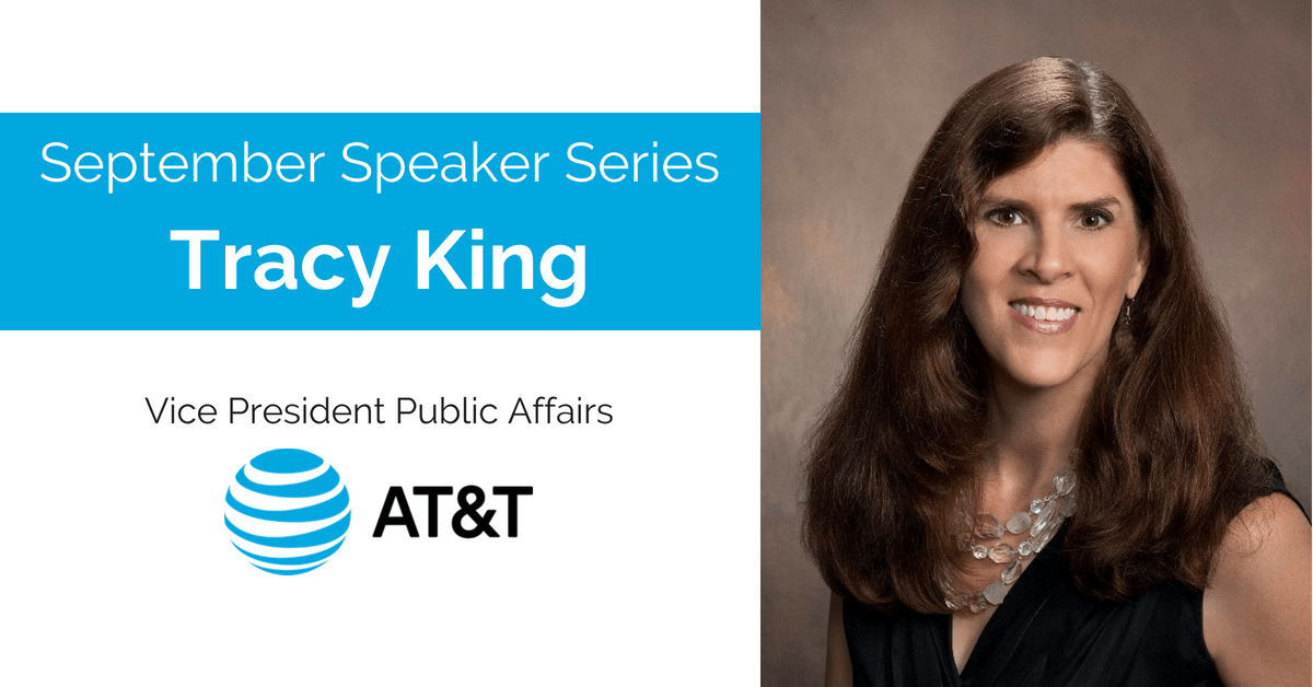 Join us for our September Speaker Series featuring Tracy King, VP of Public Affairs for AT&T!