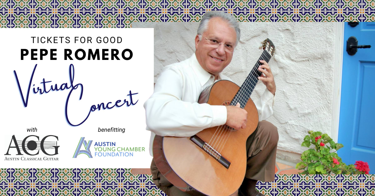 Our friends and partners at Austin Classical Guitar are planning an online concert featuring Maestro Pepe Romero on Saturday, September 26th at 8 pm.
