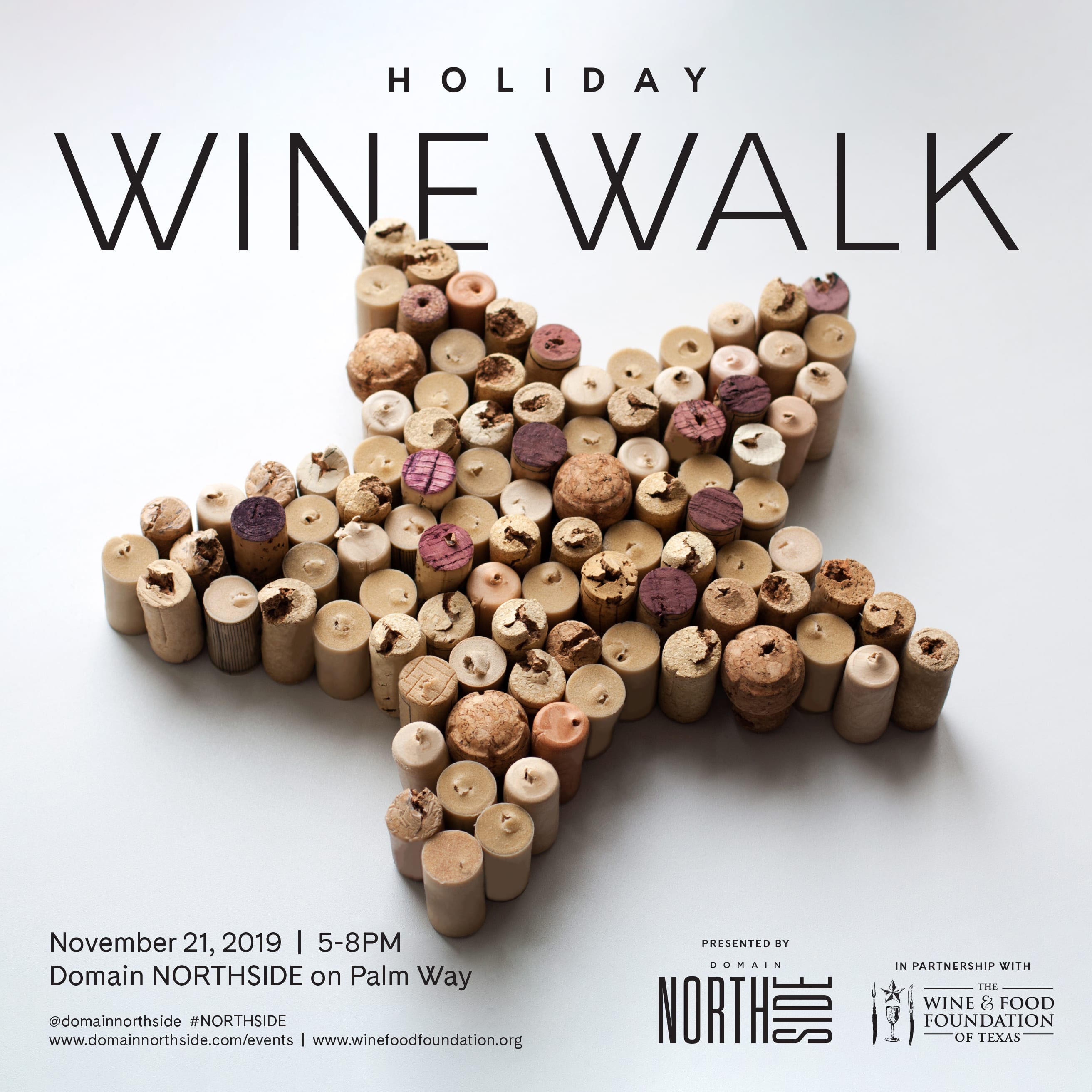 Kick off the holidays with the Domain NORTHSIDE Wine Walk in partnership with the Wine and Food Foundation of Texas. The event will take place from 5-8pm on Thursday, November 21st on Palm Way. Happy Holidays! Buy your ticket here.